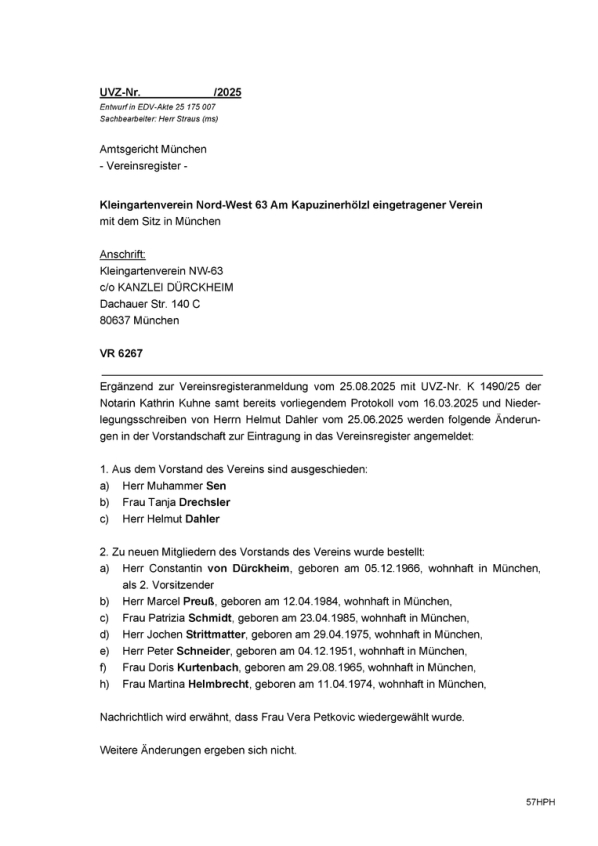 Hier ein Auszug aus der Ergänzung (vom 21.10.2025) der Registeranmeldung vom 25.08.2025: